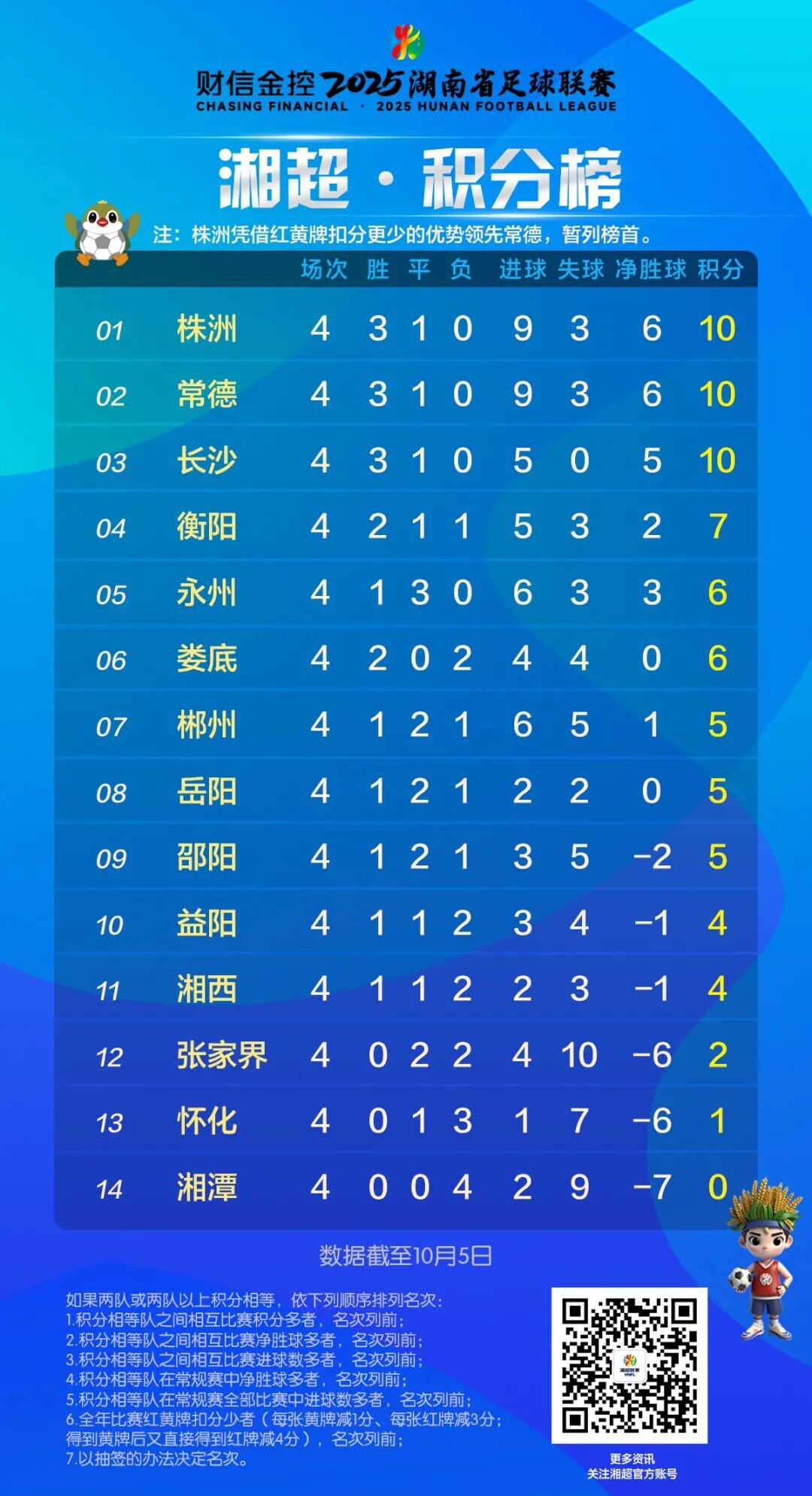 湘超積分榜(10月5日)