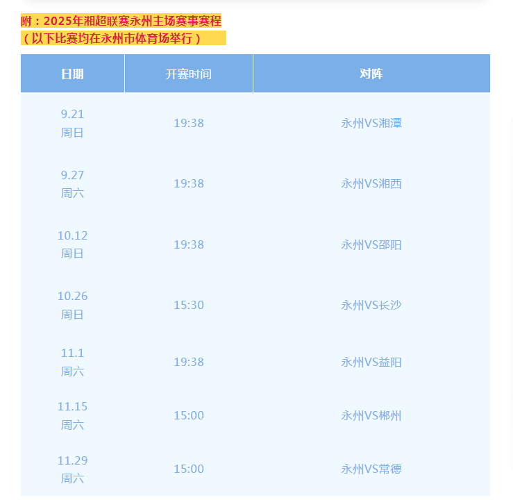 為更好地服務公眾,滿足廣大球迷朋友的文化需求,配合2025年湖南省足球協會超級聯賽(湘超聯賽)舉辦,在永州賽區(主場)賽事當天,永州市博物館將延長免費開放時間。