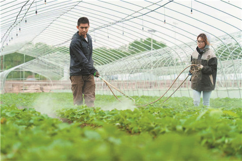 10月22日,冷水灘區珊瑚街道龍家嶺社區的草莓種植基地里,種植戶正忙著管護草莓。近年來,當地依托“合作社+基地+農戶”“農場+旅游”等模式,引導群眾結合地域實際,發展草莓、鮮桃、葡萄、西瓜等特色種植產業,有效推動農業增效、農民增收?!±字邢?ensp;攝