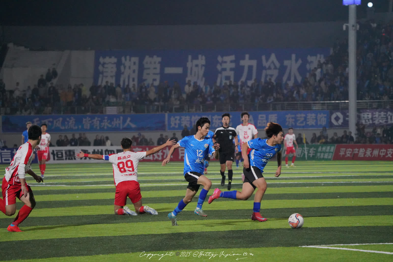 下半場易邊再戰,長沙隊換人繼續加強進攻。面對對手的猛烈攻勢,永州隊依靠穩健的防守和頑強斗志,多次化解對手攻勢,其中門將成為球隊防線的“定海神針”,多次上演高接低擋的精彩表現。隨著比賽進行,雙方攻防轉換節奏加快,拼搶十分激烈。比賽進行到第79分鐘,下半場替換上場的長沙隊66號譚想一記頭球攻破永州隊大門,將比分扳平。比賽第81分鐘,長沙隊在禁區外的一腳遠射擊中橫梁彈出。補時階段,雙方都未能把握住機會再次破門。最終,全場比賽結束,永州隊1:1逼平實力更強的長沙隊。